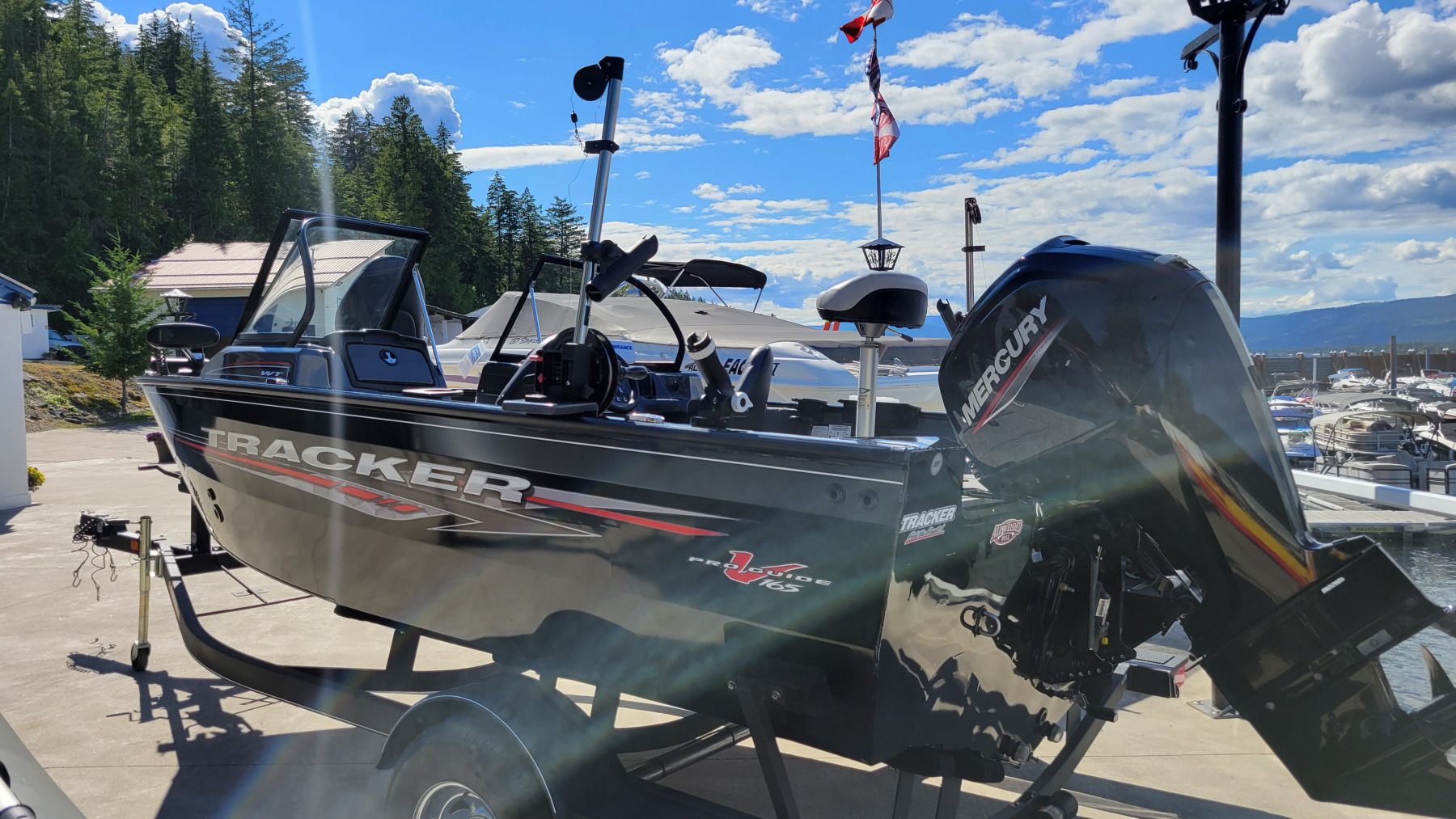 This is a perfect fishing rig for any small lakes around here, including Shuswap Lake! The 115hp Mercury Motor is 4 stroke and EFI so super reliable and easy starting and running and very quiet. There is also a 55lbs Thrust Minn Kota electric trolling motor fully rigged up to the boat. There are 2 manual downriggers, plus a bunch of rod holders, and also a cool built in fishing tackle box. There’s a livewell with aerator, a GPS fishfinder and a bluetooth stereo to round out the features. The boat comes on a single axle trailer with brakes and swing tongue, so it takes up very little space in storage. There’s no hour meter on the boat but guestimate to be about 20 hours on the main motor.  Come grab this baby before the fishing gets hot!