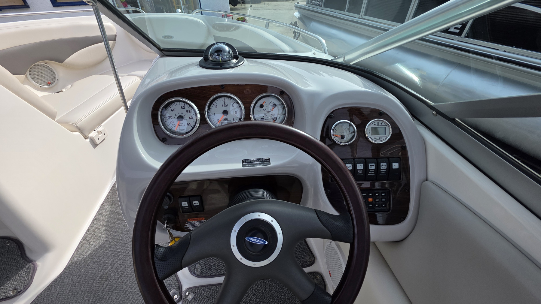 This is a very well cared for example of a 1 owner low usage family boat! 190 hours on the hour meter, fresh water only and always professionally maintained. This boat has an extended swim platform, wakeboard tower, bimini top, bow and cockpit covers, 4 speaker CD stereo, all the filler cushions, all upholstery in great condition, snap out carpets and more! The Mercruiser 5.0 MPI is a great power plant and with the bravo 3 sterndrive it gives great control and efficient cruising.